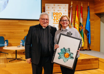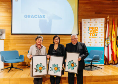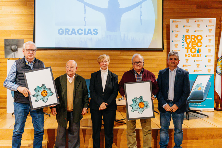 A partir de ahí, se sucedieron los bloques temáticos de conversación y la entrega de reconocimiento a los impulsores y orígenes de la entidad; a las instituciones, entidades y personas colaboradoras; a los medios de comunicación y a los motores de la acción diaria de Proyecto Hombre La Rioja. Además, se tuvo un recuerdo especial a personas fuertemente vinculadas a la entidad ya fallecidas: el sacerdote Matías Salazar y la profesional Concepción Blasco.