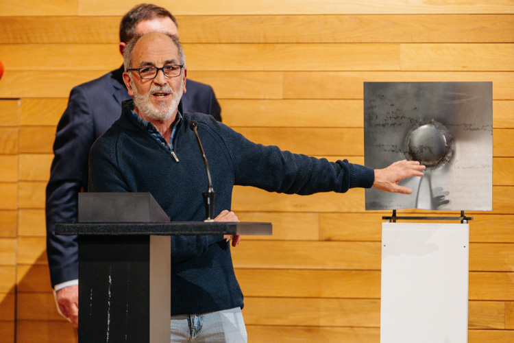 El artista riojano José Antonio Olarte presentó la obra creada para los reconocimientos del aniversario, Células verde esmeralda. “‘Células’, por el elemento vital más pequeño imprescindible para todos los seres vivos; ‘verde esmeralda’, por el color que ilumina nuestra manera de acompañar el camino de quien decide superar una adicción y recuperar el control de su vida”, explicó la organización.